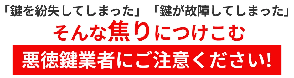 鍵業者の中にはお客様の焦っているお気持ちを利用し法外な料金を請求してくる「悪徳鍵業者」が存在します!!